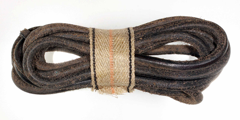 23. German WWII Ersatz Lanyard - Brown Leather. In original fabric wrapping. Does not include attachment strap. (Several Available).