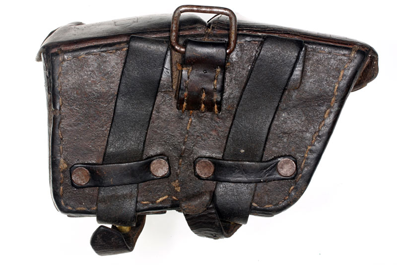 4. German WWII leather ammo pouch for Austrian-made Steyr-Mannlicher M95 Rifle. Brown leather construction. On the top of the lids are some number markings. Very Good overall condition considering the age.