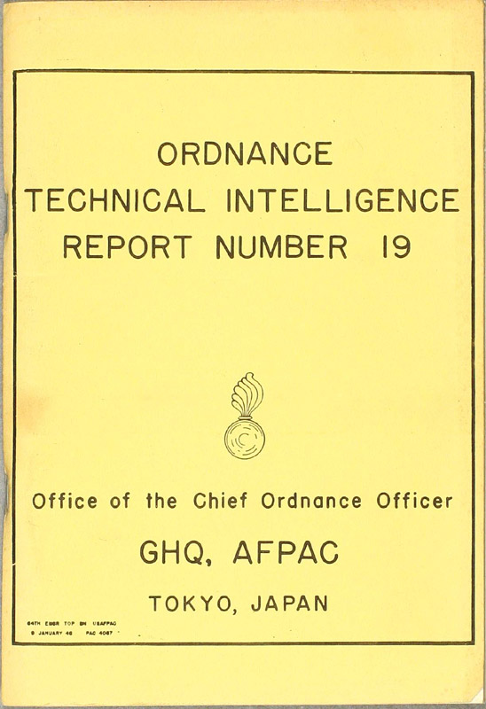65. Ordnance Technical Intelligence Report Number 19. Office of the Chief Ordnance Officer. GHQ, AFPAC. Tokyo, Japan. Prepared by Edward B. Bruderlin and Robert S. Nelson. 1971 U.S. Reprint. Paperback. 113 pages.