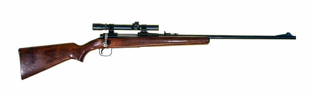 1. Remington Model 721 Bolt Action Rifle with Scope. Serial #2275xx. Manufactured December 1951. Chambered for .30-06 Springfield. 4-round magazine capacity. 24" barrel. Blued finish with plain walnut stock. Weaver K2.5 Scope w/ Weaver detachable rings. Scope glass is hazy. Forestock has minor chip. Bore is very good. Very Good Overall Condition.