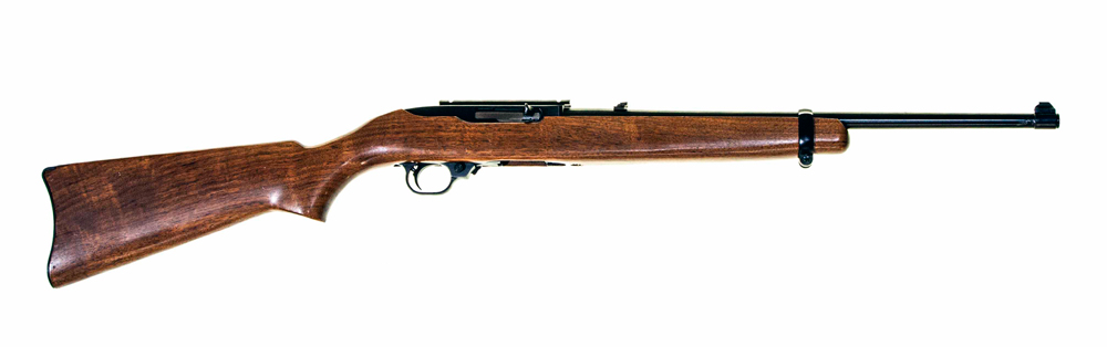 4. Ruger Model 10/22 Standard Carbine. Serial #1343xx. Manufactured 1968. Chambered for .22 LR. Includes (2) 10 round rotary magazines. 18.5" barrel with folding rear sight. Smooth walnut pistol grip stock. Includes scope mount. Barrel has some scratches and some minor pitting behind front sight as well as some minor rust spots. Bore is excellent. Good Overall Condition.
