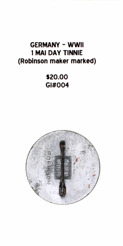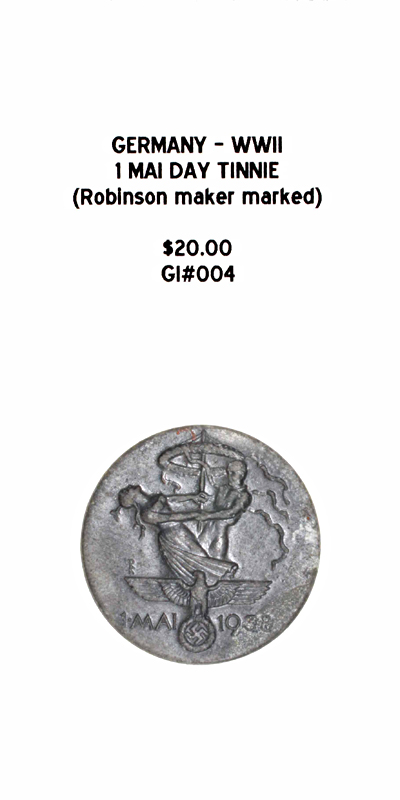 Germany, WWII - 1 Mai Day 1938 Tinnie (Robinson Maker Marked) |