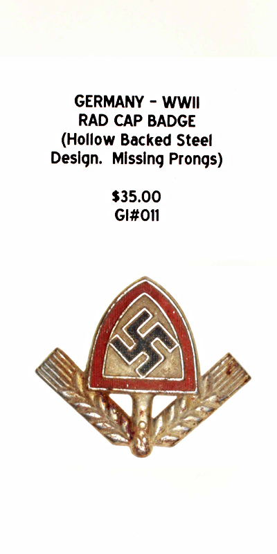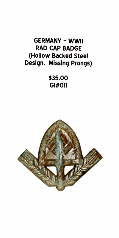 Germany, WWII - Rad Cap Badge (Hollow Backed Steel Design, Missing Prongs) |