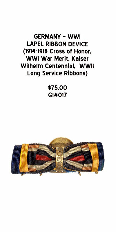 Germany, WWI - Lapel Ribbon Device (1914-1918 Cross of Honor, WWI War Merit, Kaiser Wilhelm Centennial, WWII Long Service Ribbons) |