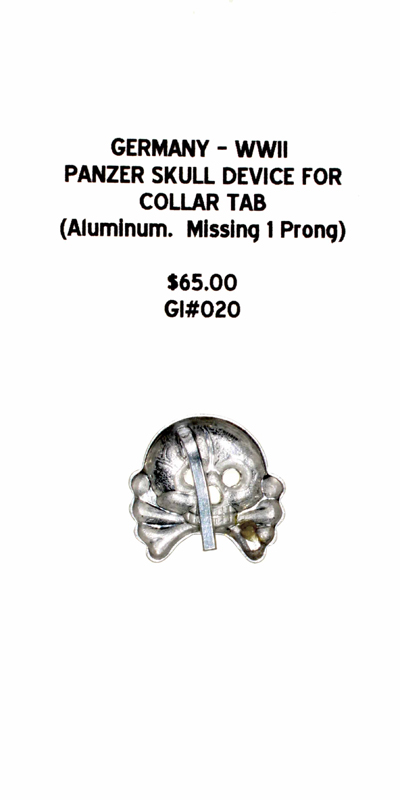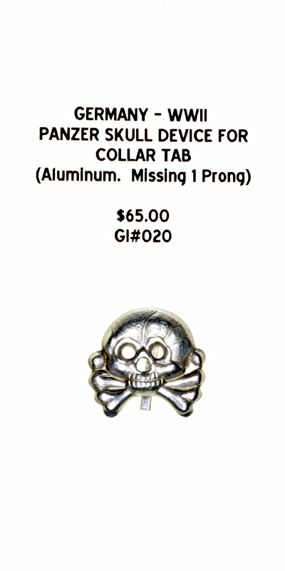 Germany, WWII - Panzer Skull Device for Collar Tab (Aluminum, Missing 1 Prong) |