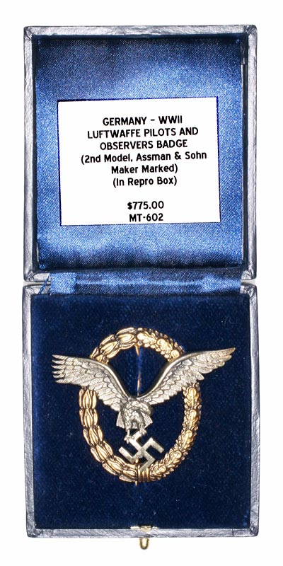 Germany, WWII - Luftwaffe Pilot's and Observer's Badge, (2nd Model, Assman & Sohn Maker Marked), in repro box |