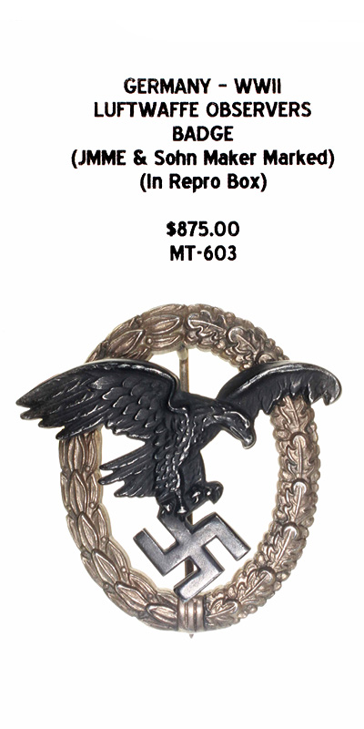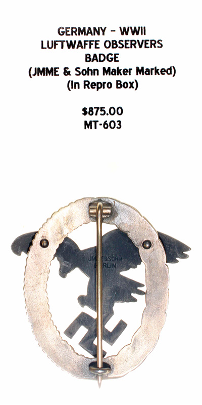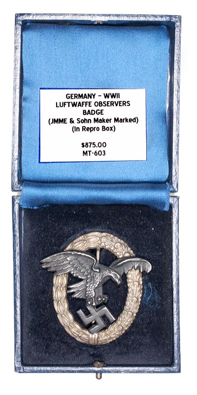 Germany, WWII - Luftwaffe Observer's Badge, (JMME & Sohn Maker Marked), in repro box |