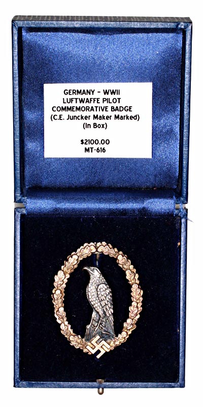 Germany, WWII - Luftwaffe Pilot Commemorative Badge, (C.E. Juncker Maker Marked), in box |