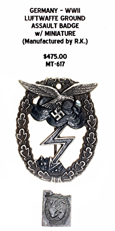 Germany, WWII - Luftwaffe Ground Assault Badge with Miniature, (Manufactured by R.K.) |
