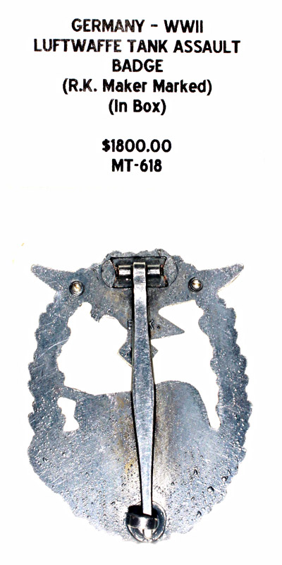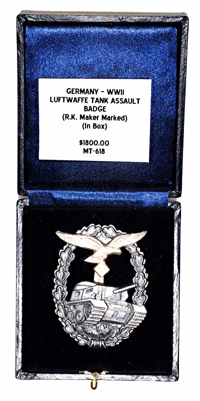 Germany, WWII - Luftwaffe Tank Assault Badge, (R.K. Maker Marked), in box |