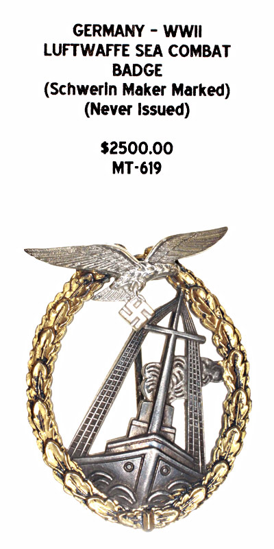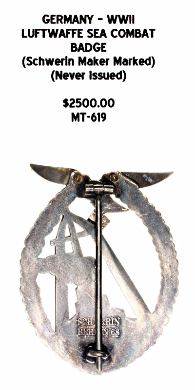 Germany, WWII - Luftwaffe Sea Combat Badge (Schwerin Maker Marked) Never Issued |