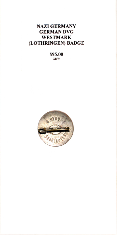 German DVG Westmark (Lothringen) Badge |