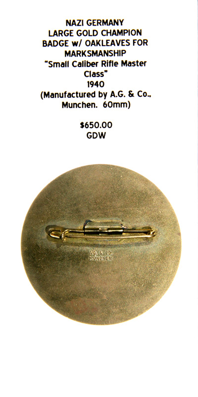 Large Gold Champion Badge with Oakleaves for Marksmanship "Small Caliber Rifle Master Class" 1940 (Manufactured by A.G. & Co., Munchen. 60mm) |