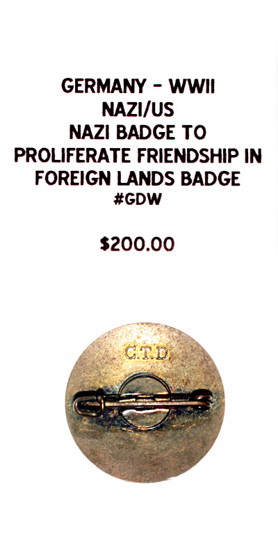Nazi/US Nazi Badge to Proliferate Friendship in Foreign Lands Badge |