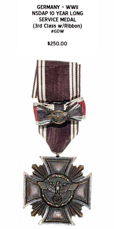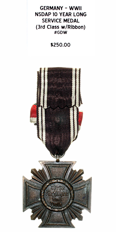 NSDAP 10 Year Long Service Medal (3rd Class with Ribbon) |