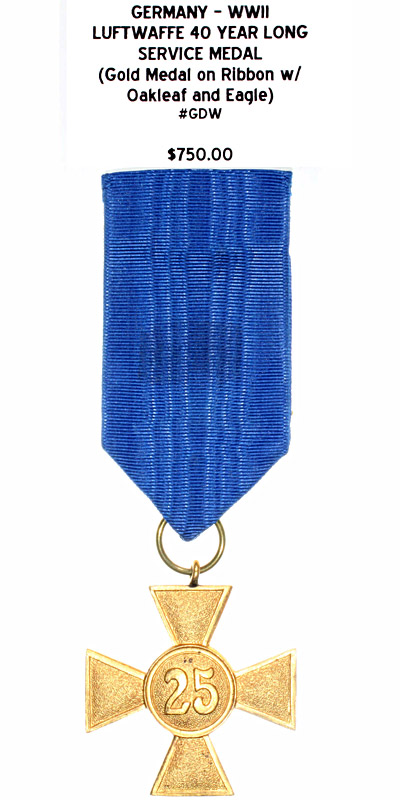 Luftwaffe 40 Year Long Service Medal (Gold Medal on Ribbon with Oakleaf and Eagle) |