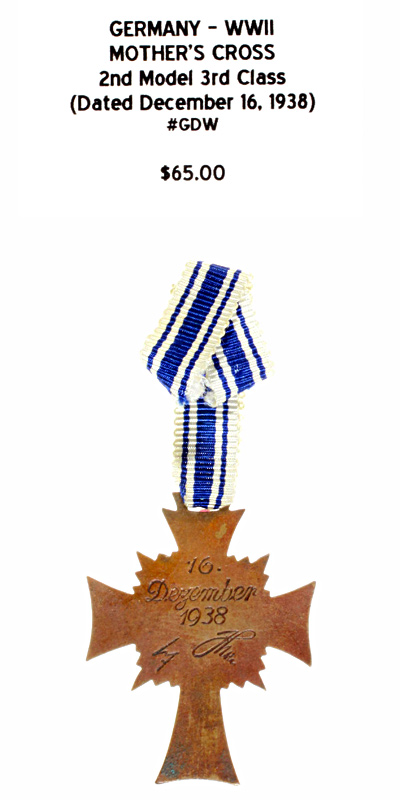 Mother's Cross 2nd Model 3rd Class (Dated December 16, 1938) |