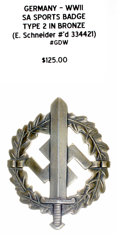 SA Sports Badge Type 2 in Bronze (E. Schneider #'d 334421) |