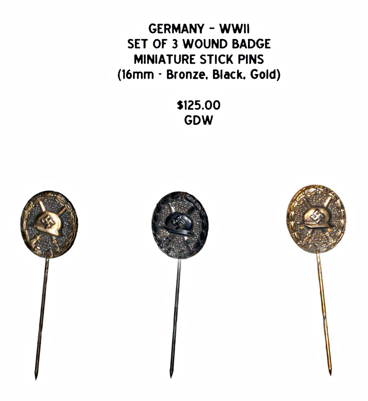 Set of 3 Wound Badge Miniature Stick Pins - 16mm Bronze, Black, Gold |