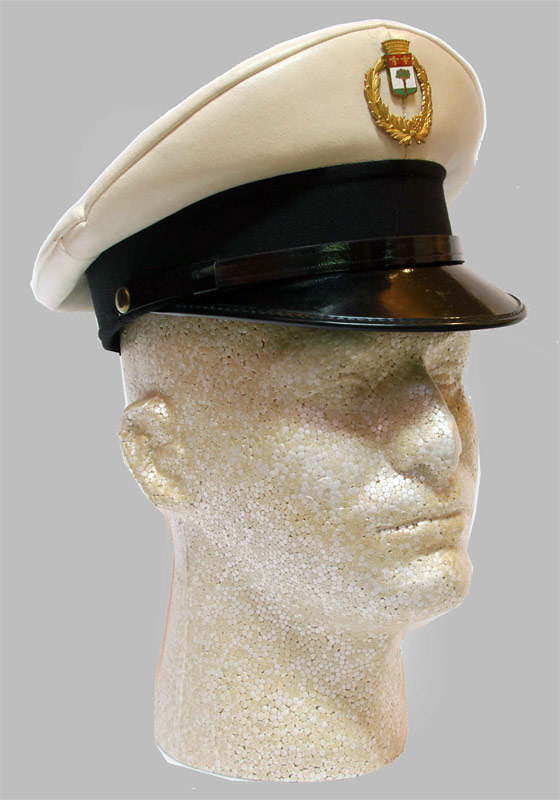 1. Cassina De Pecchi Municipal Police Hat. White imitation leather construction with crest. Size 56. Very Good Condition.