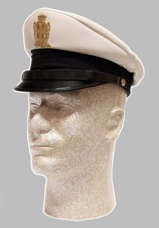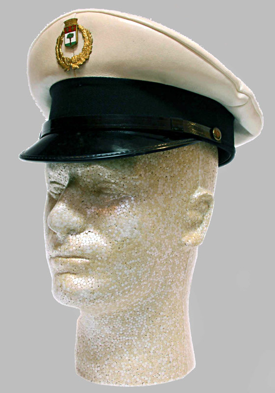 3. Milan Municipal Police Hat. White imitation leather construction with gold colored crest. Very Good Condition.