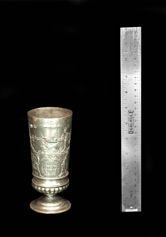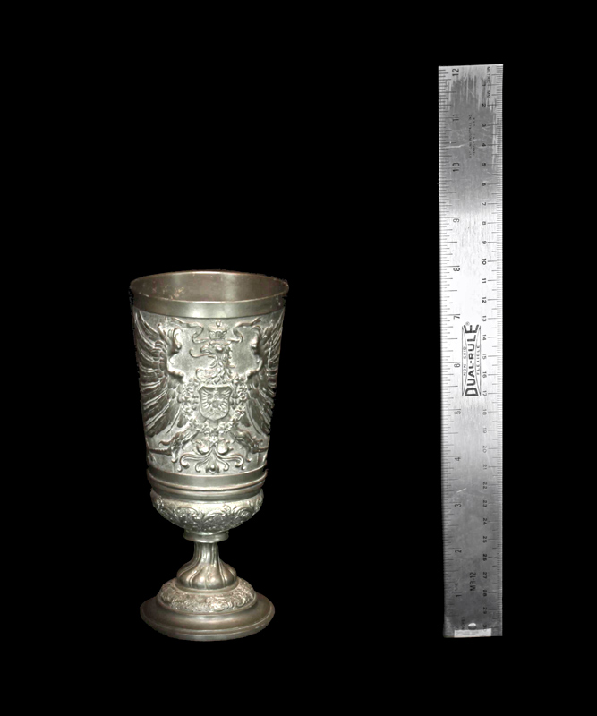 Imperial Prussian Pewter Cup – 7.25" tall. 3.25" diameter. Footed pewter cup with raised depiction of the Prussian Eagle. Excellent Condition.