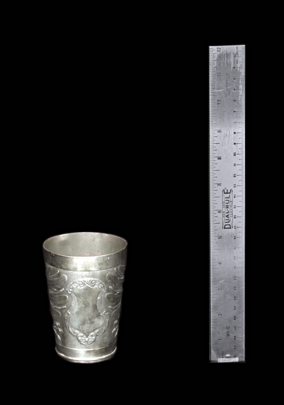 Imperial German Eagle Cup – 4.5" tall, 3" diameter. Pewter finish. Embossed Eagle and Script Cypher. Turn of the century piece. Good Condition.