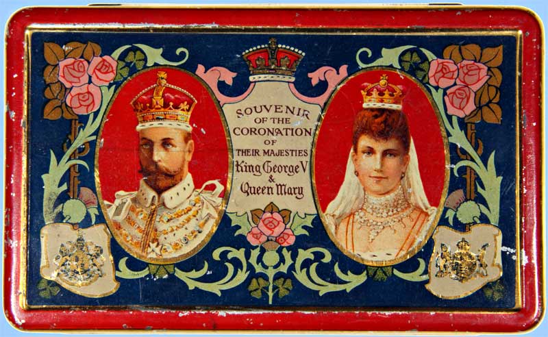 Chocolate Tin — Commemorative Chocolate Tin for the Coronation of King George V and Queen Mary - 1911.